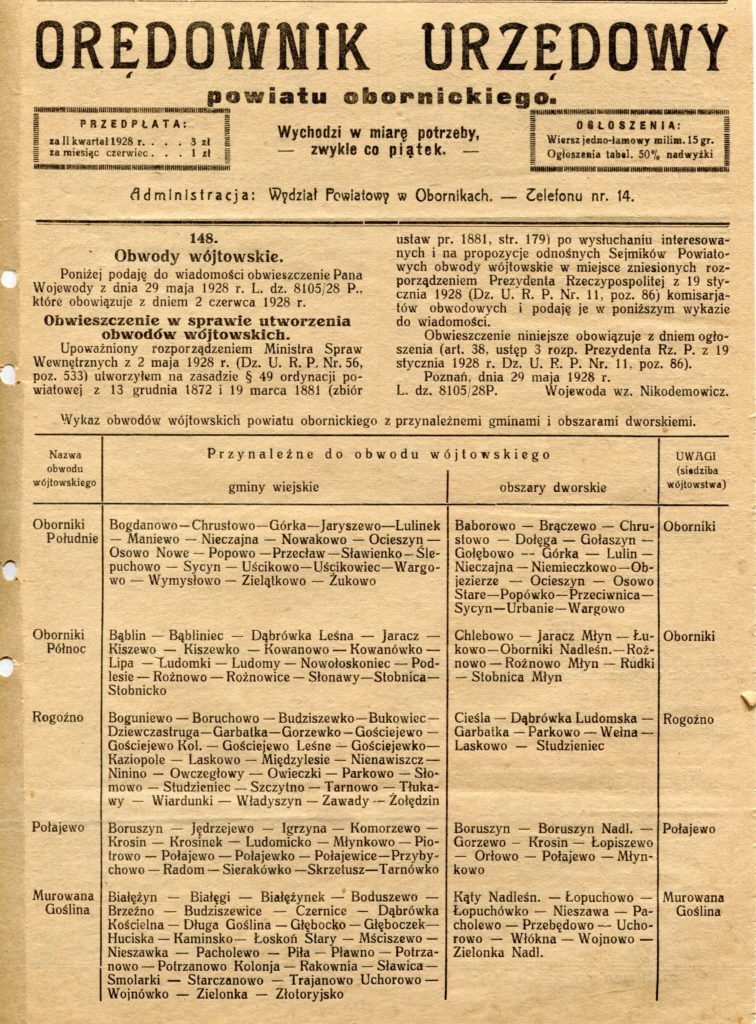 - 30 czerwca 1937 roku rozpoczęła się półkolonia dla dzieci biednych. Inicjatorem półkolonii były władze miejskie Obornik i Związek Pracy Obywatelskiej Kobiet. Spotkania 120 dzieci odbywały się na terenie Szkoły Podstawowej nr 1. Kierowniczką półkolonii była pani Stefania Maniszewska. W programie „gry sportowe, wycieczki i kąpiele nad Wełną”