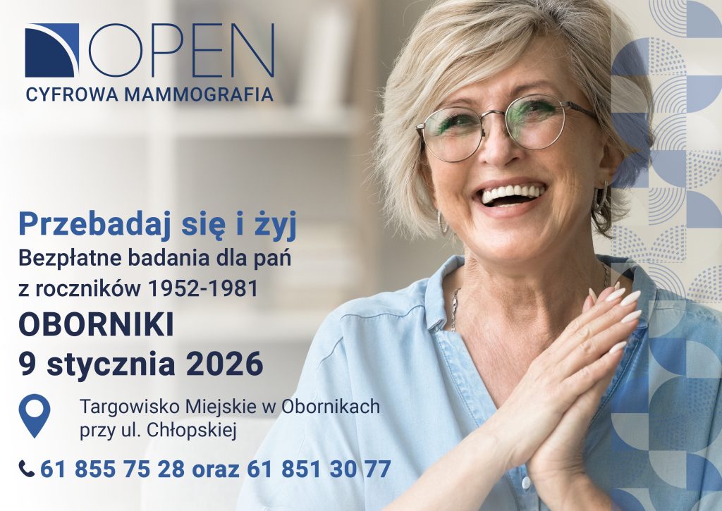Zachęcamy wszystkie mieszkanki naszej gminy urodzone w latach (1952-1981) do udziału w nieodpłatnym badaniu. Mammobus będzie dostępny na Targowisku Miejskim w Obornikach przy ul. Chłopskiej.