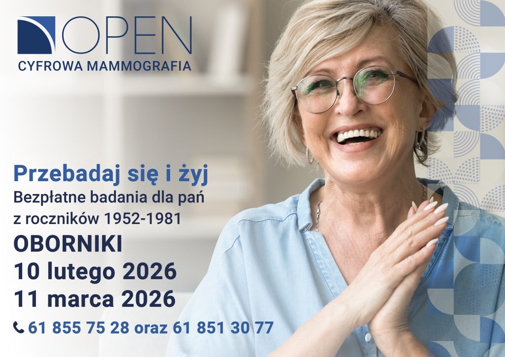 10 lutego w godzinach 14:00-17:00 oraz 11 marca w godzinach 9:00-17:00 w Obornikach odbędą się bezpłatne badania mammograficzne realizowane przez firmę Ośrodek Profilaktyki i Epidemiologii Nowotworów S.A. w Poznaniu.