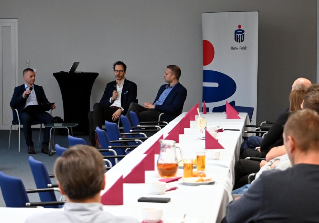 Kolejna część spotkania poświęcona była tematowi elektromobilności oraz finansowaniu zielonych inwestycji. Eksperci z PKO Banku Polskiego przedstawili aktualne możliwości wsparcia zakupu samochodów elektrycznych, zasady programów dopłat oraz korzyści wynikające z przechodzenia „na prąd”. Rozmowa dotyczyła również wymogów ESG oraz sposobów, w jakie małe i średnie przedsiębiorstwa mogą wykorzystać te regulacje jako szansę – nie tylko obowiązek.