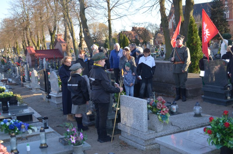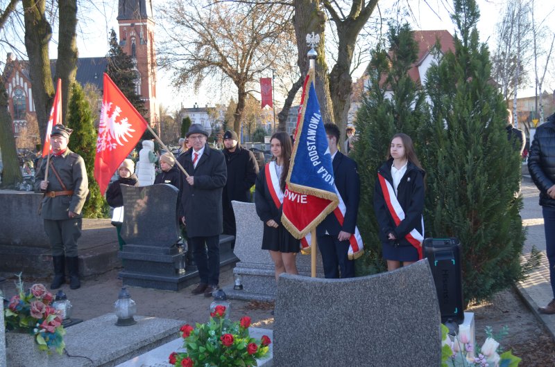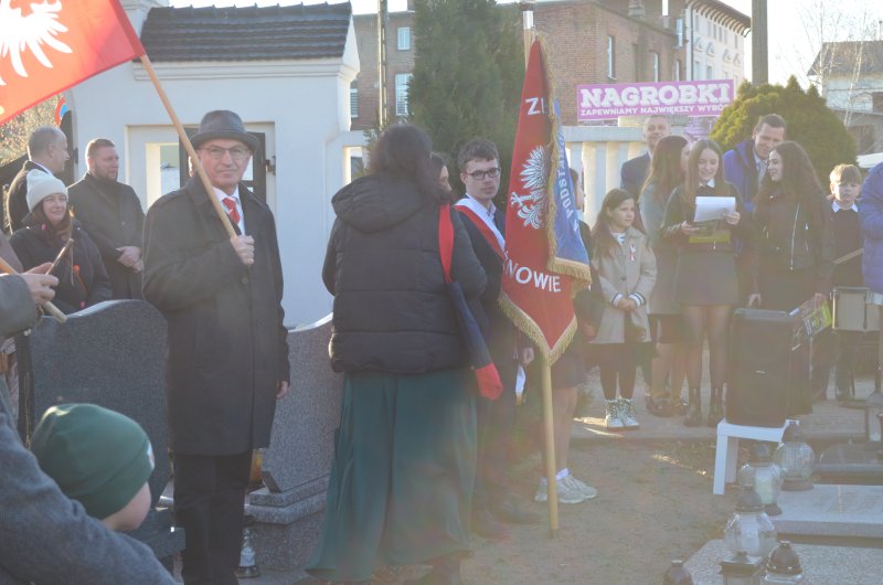 Pierwsza część wydarzenia miała miejsce na cmentarzu parafialnym w Obornikach. Zebrani uczestniczyli w uroczystym odsłonięciu tabliczek upamiętniających weteranów: Klemensa Kasprowicza oraz Wacława Kamińskiego – przodków naszych uczniów i absolwentów. W wydarzeniu wzięli udział licznie zgromadzeni goście, rodziny weteranów, samorządowcy oraz społecznicy, w tym zastępca burmistrza Piotr Woszczyk.