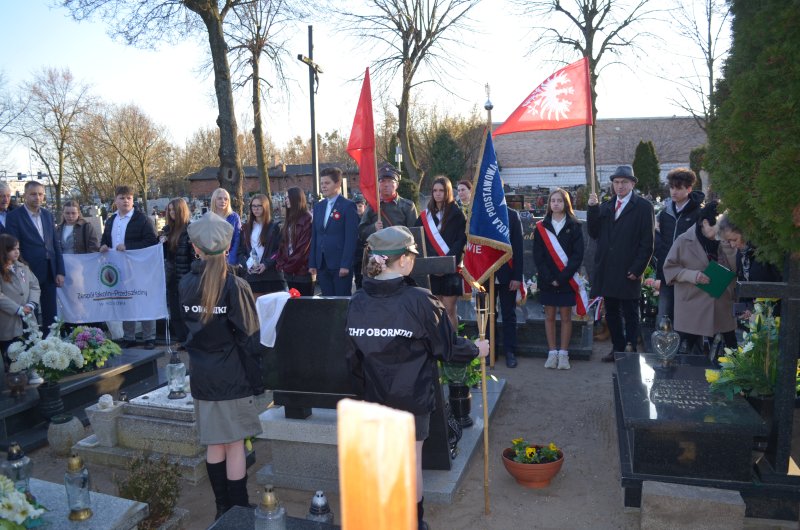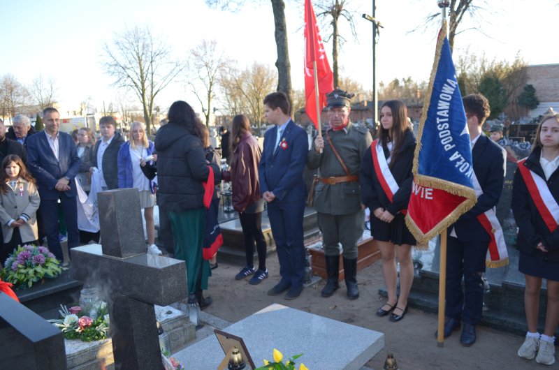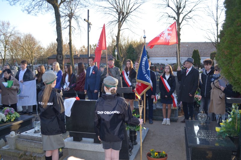 Pierwsza część wydarzenia miała miejsce na cmentarzu parafialnym w Obornikach. Zebrani uczestniczyli w uroczystym odsłonięciu tabliczek upamiętniających weteranów: Klemensa Kasprowicza oraz Wacława Kamińskiego – przodków naszych uczniów i absolwentów. W wydarzeniu wzięli udział licznie zgromadzeni goście, rodziny weteranów, samorządowcy oraz społecznicy, w tym zastępca burmistrza Piotr Woszczyk.