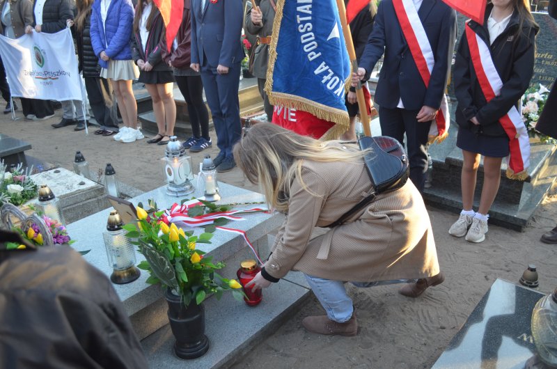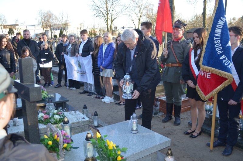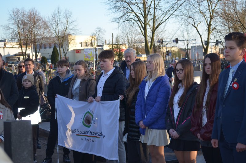 Pierwsza część wydarzenia miała miejsce na cmentarzu parafialnym w Obornikach. Zebrani uczestniczyli w uroczystym odsłonięciu tabliczek upamiętniających weteranów: Klemensa Kasprowicza oraz Wacława Kamińskiego – przodków naszych uczniów i absolwentów. W wydarzeniu wzięli udział licznie zgromadzeni goście, rodziny weteranów, samorządowcy oraz społecznicy, w tym zastępca burmistrza Piotr Woszczyk.