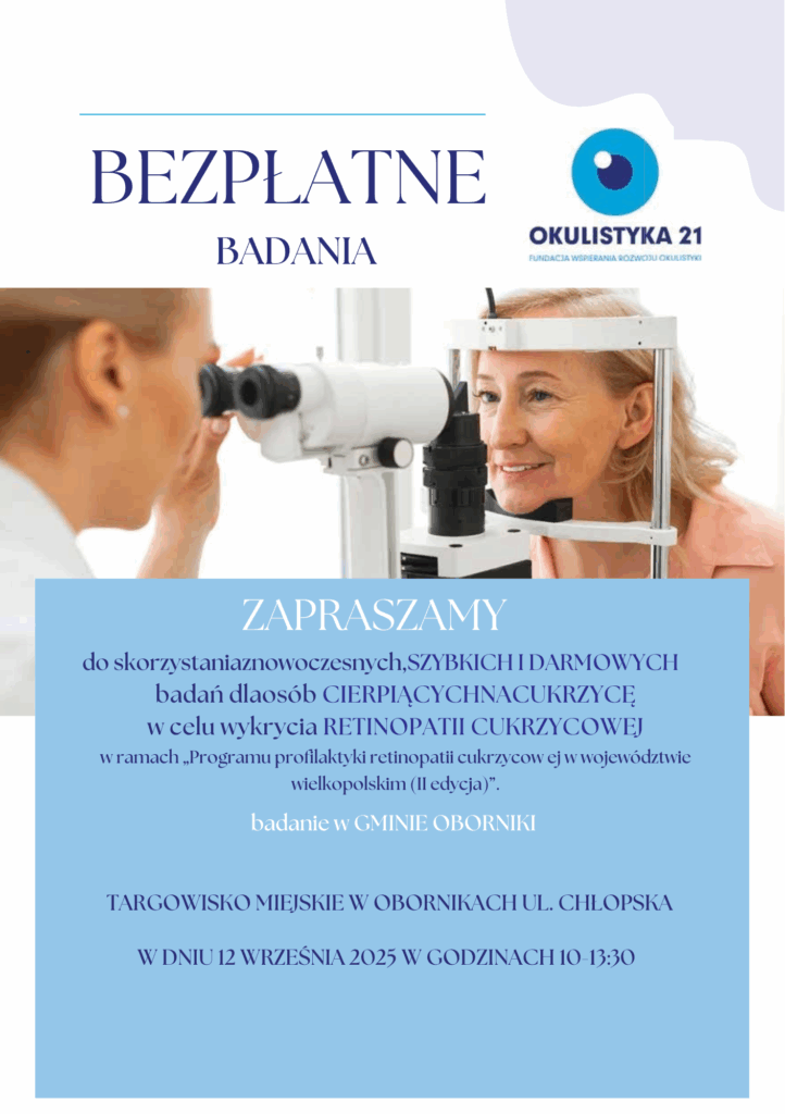 Wielkopolski Samorząd Województwa wraz z Unią Europejską finansują nowatorski projekt profilaktyczny, którego celem jest wczesne wykrywanie retinopatii cukrzycowej u osób chorujących na cukrzycę. Schorzenie to, szczególnie niebezpieczne dla wzroku, w początkowych stadiach często przebiega bezobjawowo, a nieleczone może prowadzić do całkowitej utraty wzroku.