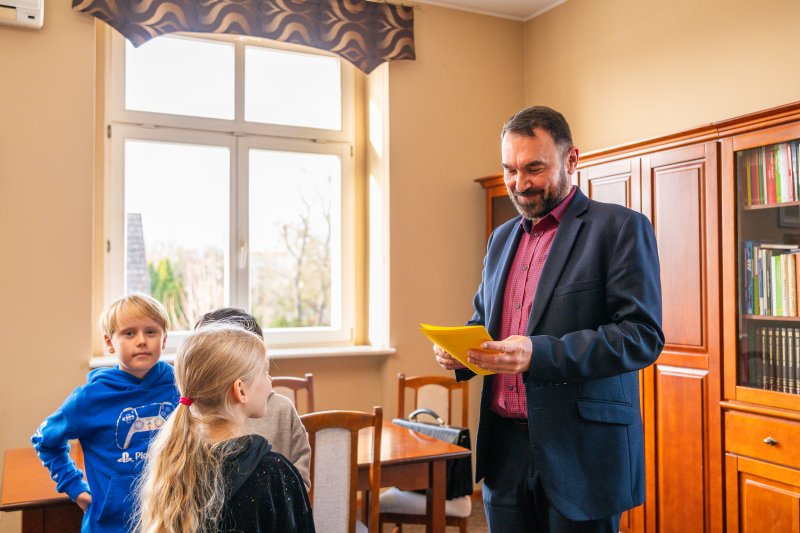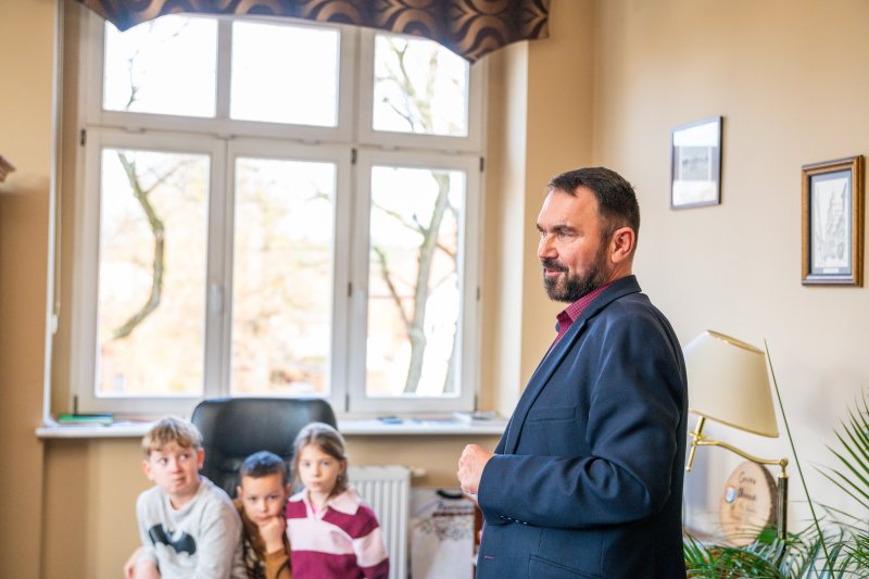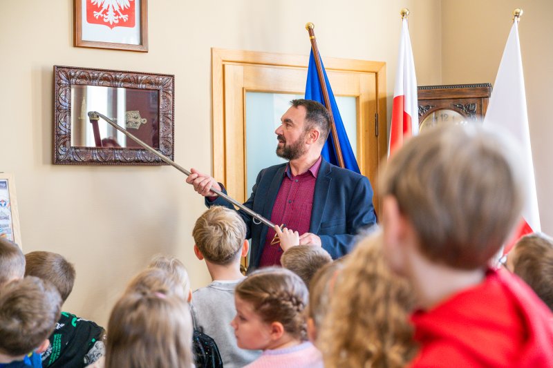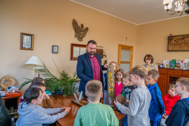 W czwartek, 13 listopada klasa II ze Szkoły Podstawowej nr 4 odwiedziła Burmistrza Obornik Tomasza Szramę, który zapoznał ich ze swoimi codziennymi obowiązkami, udzielił odpowiedzi na pytania i poczęstował słodkościami. Dzieci miały też możliwość zasiąść przy burmistrzowskim biurku oraz zwiedzić Urząd Miejski.
