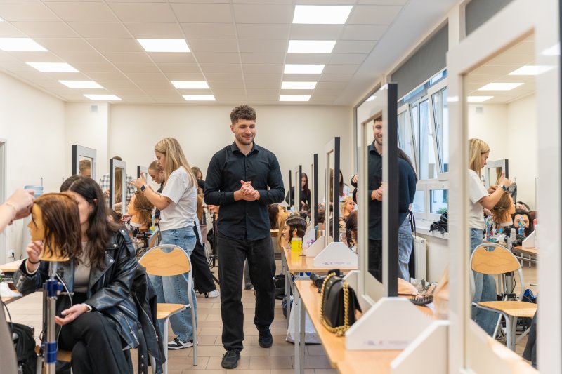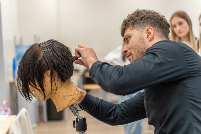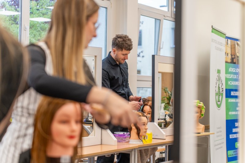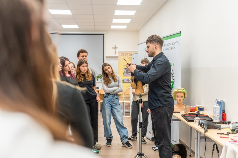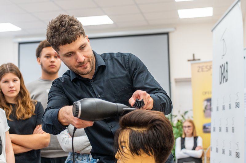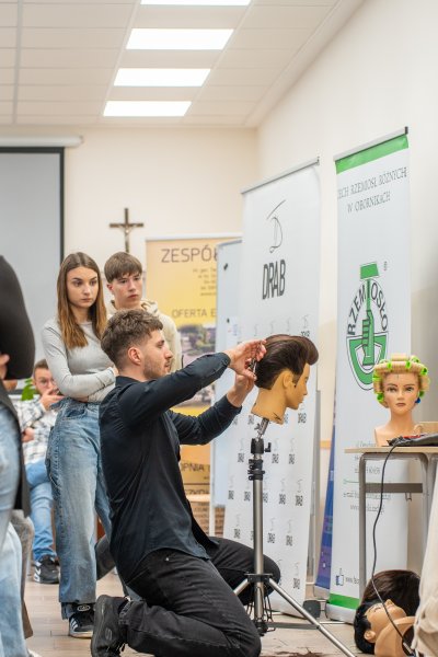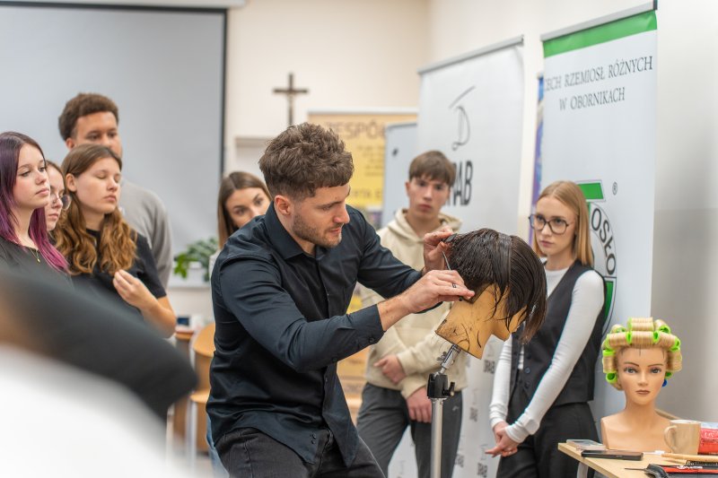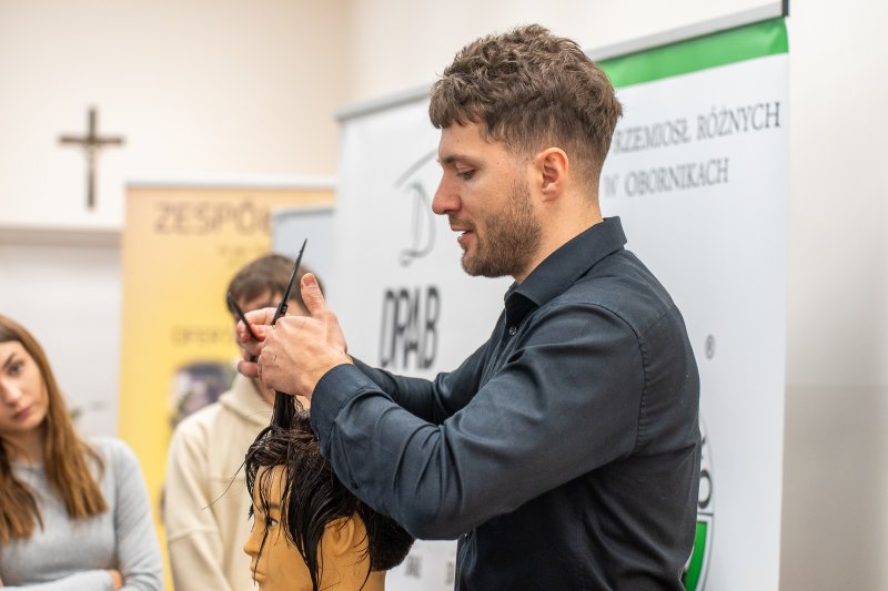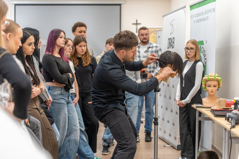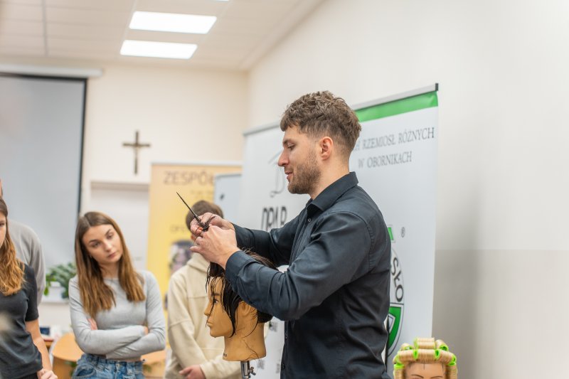 W szkoleniu wzięli udział uczniowie branżowej szkoły I stopnia, którzy pobierają naukę zawodu w zakładach zrzeszonych w organizacji. To właśnie oni mieli niezwykłą okazję pracować pod okiem Tomasza Draba – mistrza świata we fryzjerstwie, znanego z zaangażowania i ogromnego dorobku zawodowego.