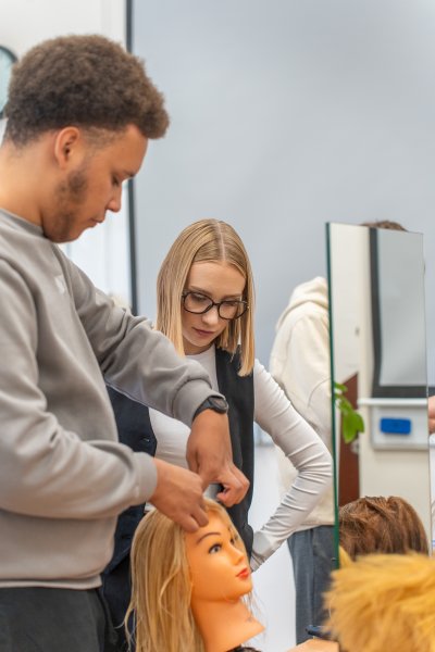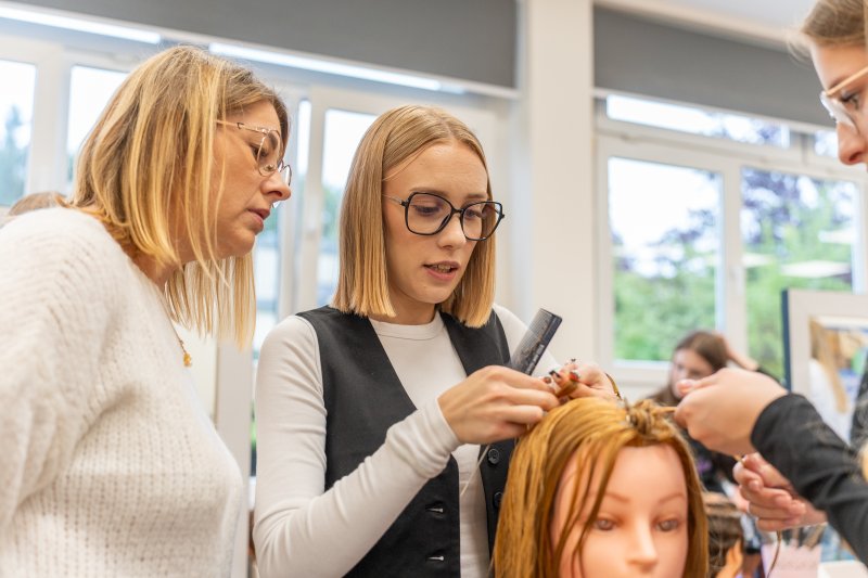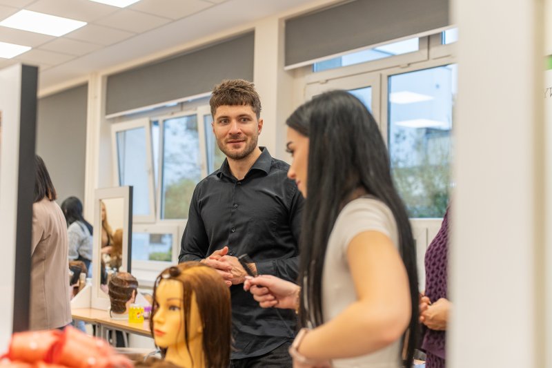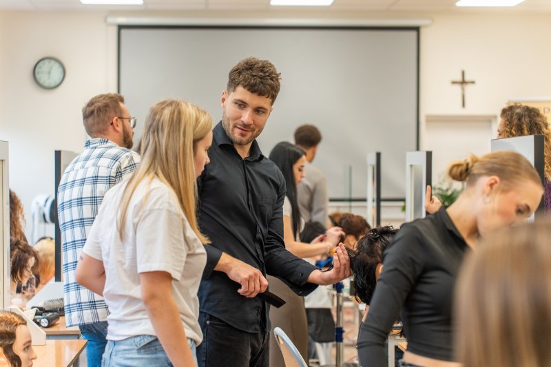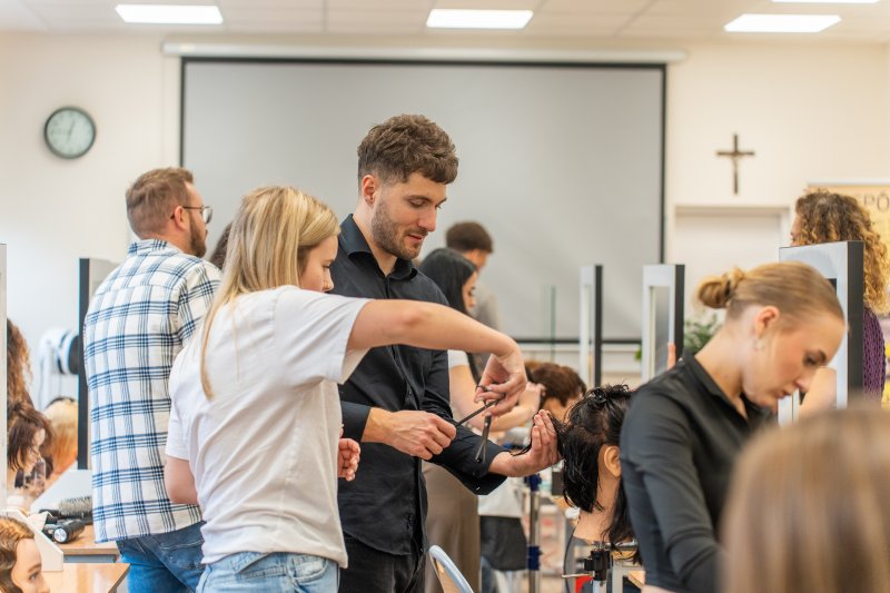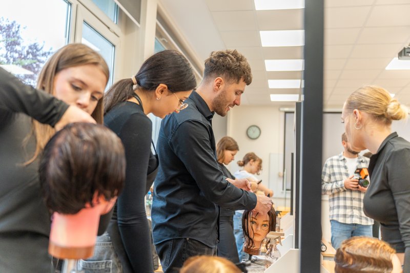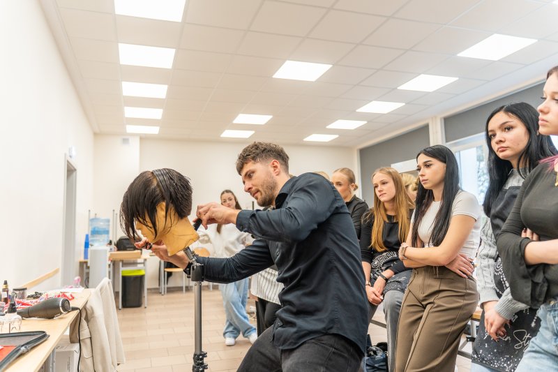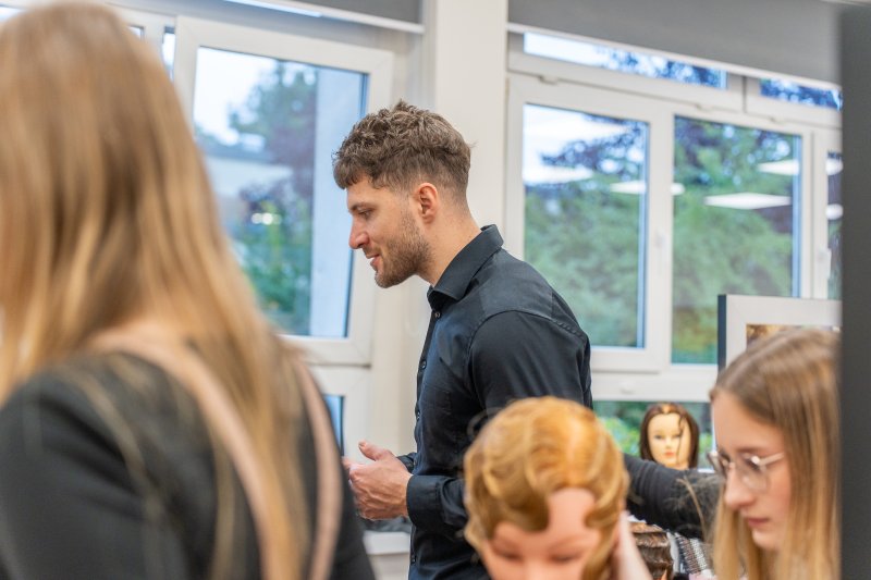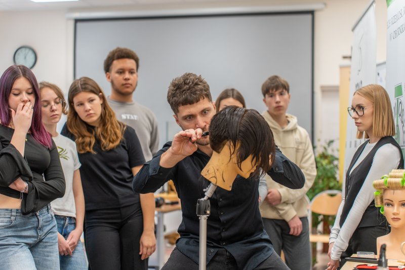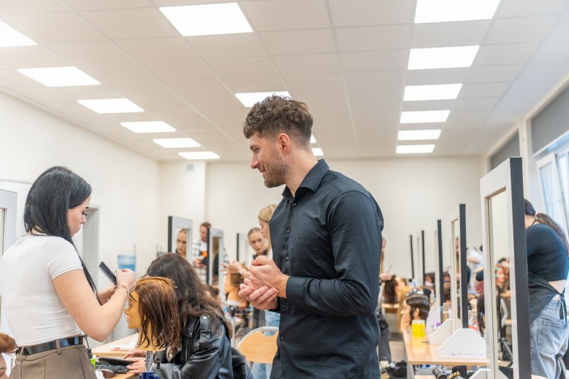 W szkoleniu wzięli udział uczniowie branżowej szkoły I stopnia, którzy pobierają naukę zawodu w zakładach zrzeszonych w organizacji. To właśnie oni mieli niezwykłą okazję pracować pod okiem Tomasza Draba – mistrza świata we fryzjerstwie, znanego z zaangażowania i ogromnego dorobku zawodowego.