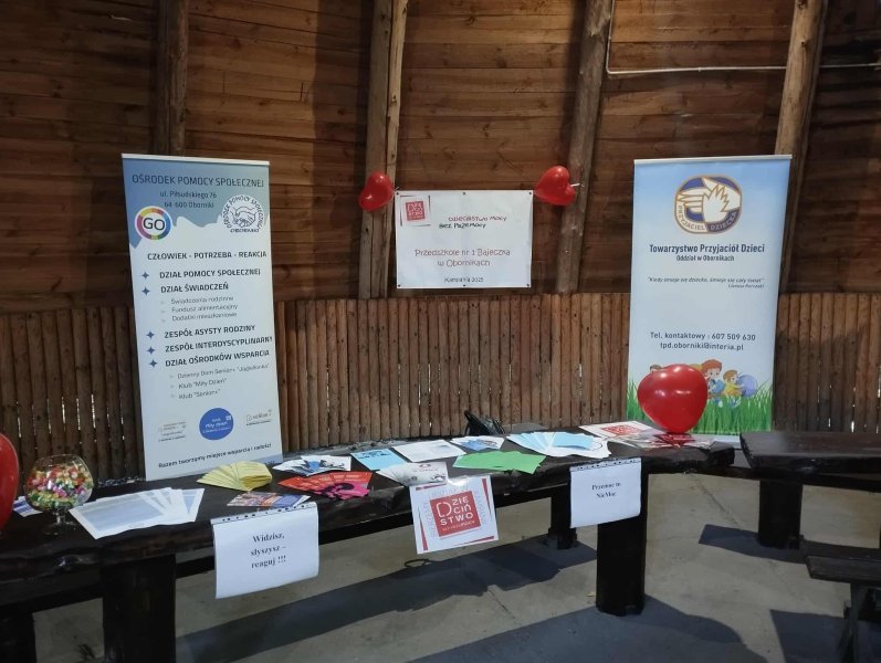 Po ukończonym rajdzie na uczestników czekała ciepła herbata, słodki poczęstunek oraz stoisko profilaktyczne, na którym można było dowiedzieć się czym jest przemoc, gdzie na terenie gminy Oborniki można szukać wsparcia oraz jak wielką moc ma tworzenie każdego dnia świata pełnego mocy nie przemocy dla prawidłowego rozwój najmłodszych.