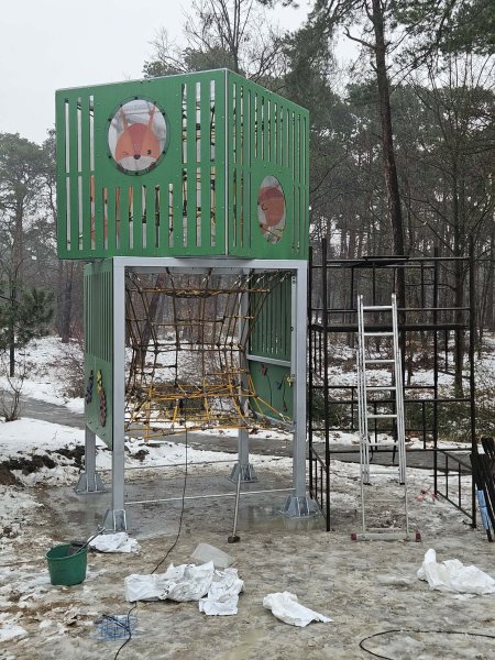 Po zakończeniu pierwszego etapu inwestycji, w ramach którego powstał plac zabaw Galaktyka, rozpoczęto realizację etapu II. Obecnie, przy wejściu do obiektu – po prawej stronie – trwa montaż nowoczesnej wieży rekreacyjnej wraz z elementami małej architektury.