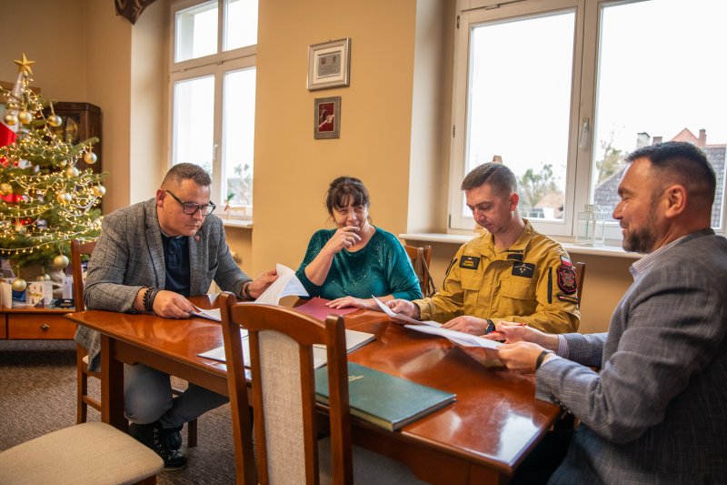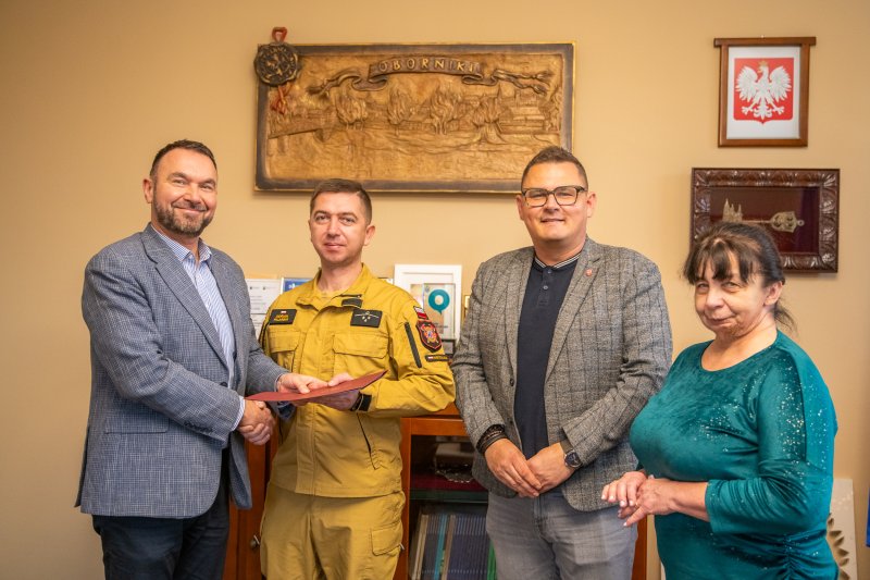 Podpisaniu umowy towarzyszyli Radni Rady Miejskiej Barbara Bacic-Gaertner i Błażej Pacholski, a także Adrian Pilarski, wiceprezes i naczelnik OSP w Nieczajnie.