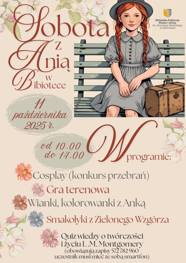 Marzyliście kiedyś, żeby przenieść się na Zielone Wzgórze i spotkać rudowłosą Anię Shirley? Teraz to możliwe! Zapraszamy w sobotę, 11 października do Biblioteki Publicznej na wyjątkowe wydarzenie pełne literackich przygód i dobrej zabawy.