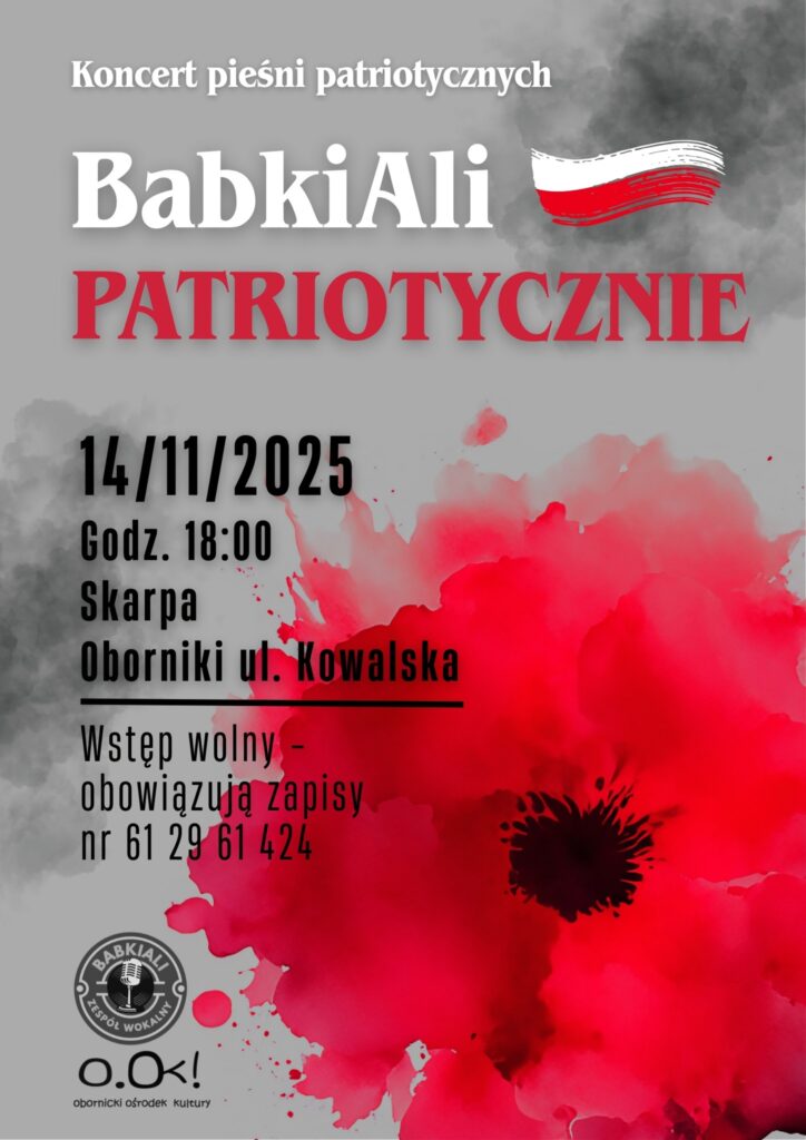 W jesienny wieczór, gdy listopadowy wiatr niesie echo dawnych lat, zapraszamy na muzyczną podróż przez serce i historię. Zespół BabkiAli rozbrzmi pieśnią o Ojczyźnie – pełną wzruszeń, pamięci i dumy.