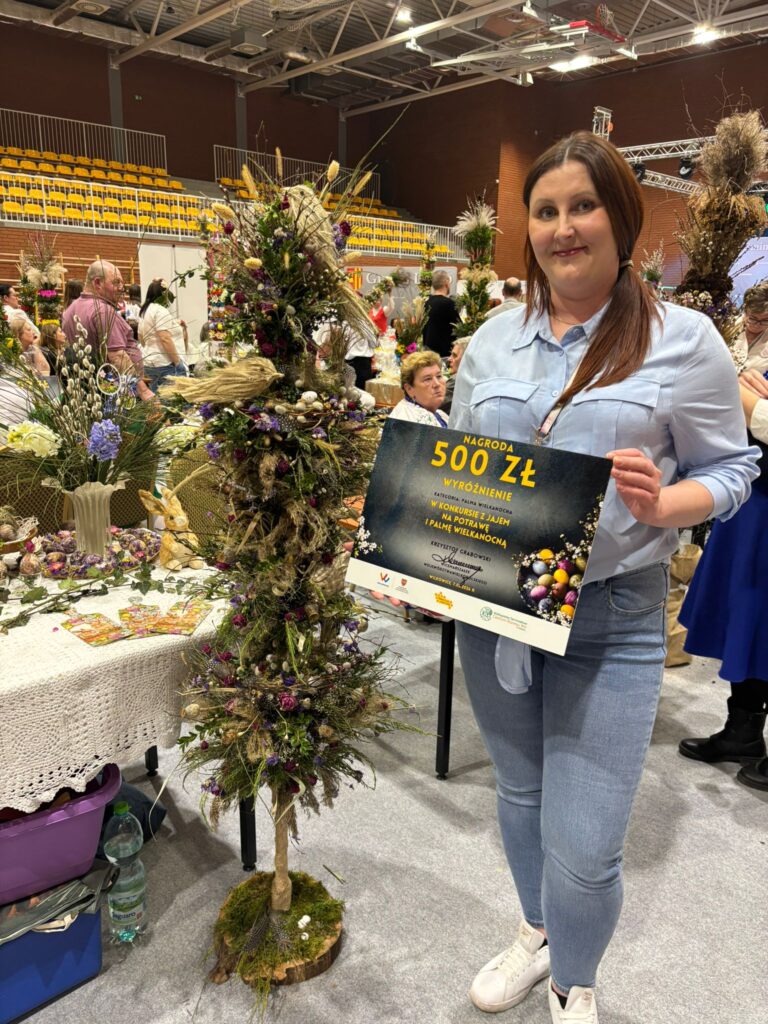 Z dumą informujemy, że spośród 100 uczestniczących kół, KGW w Podlesiu zdobyło wyróżnienie za palmę wielkanocną pt. „Między Ziemią a Niebem – Harmonia Człowieka z Naturą”.