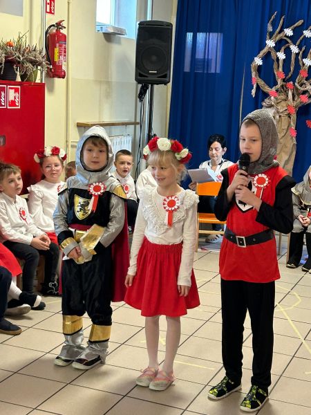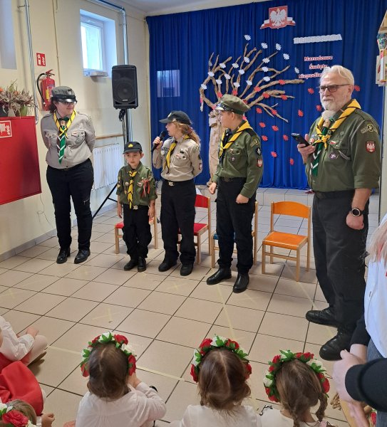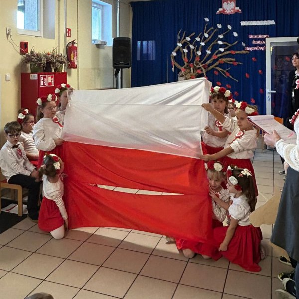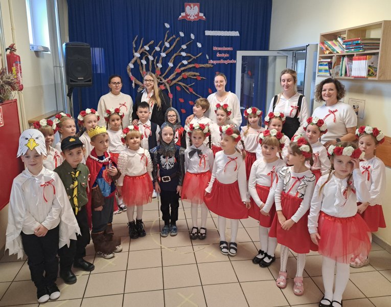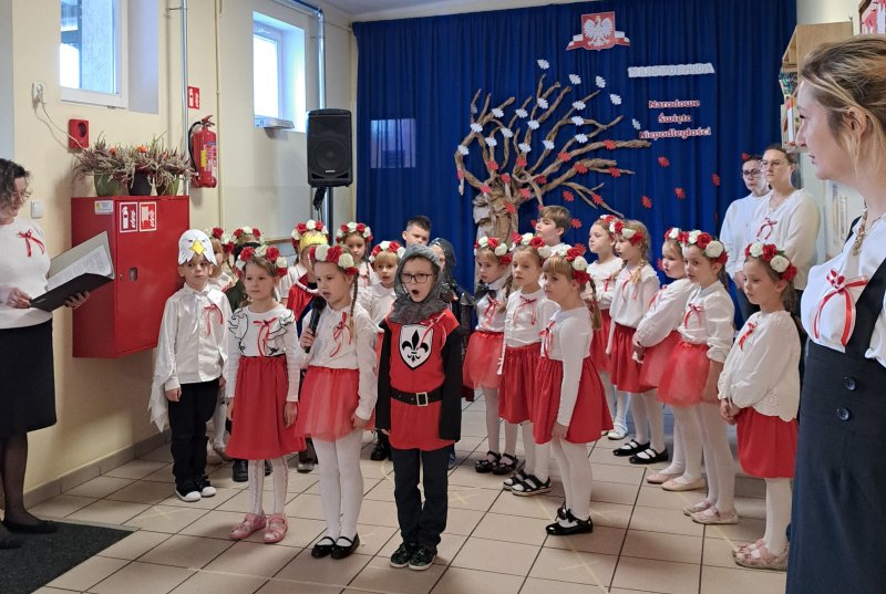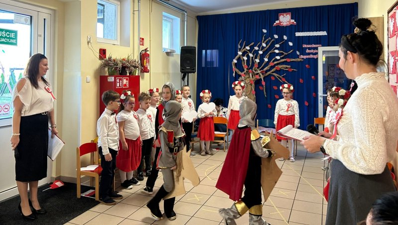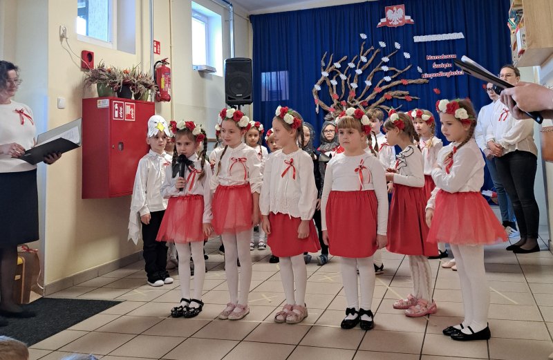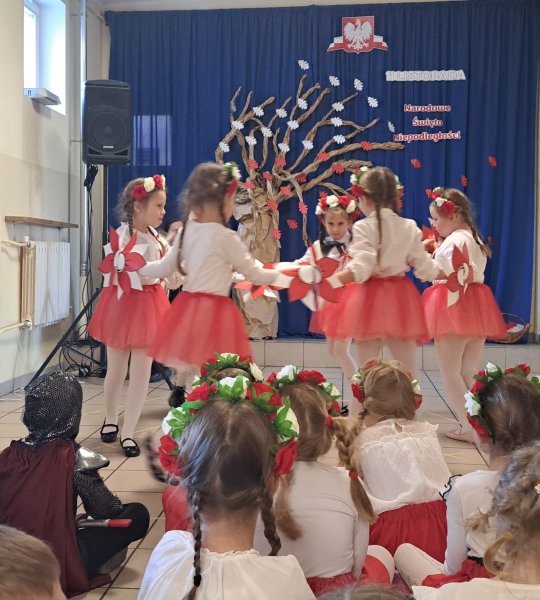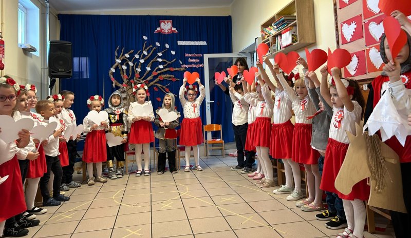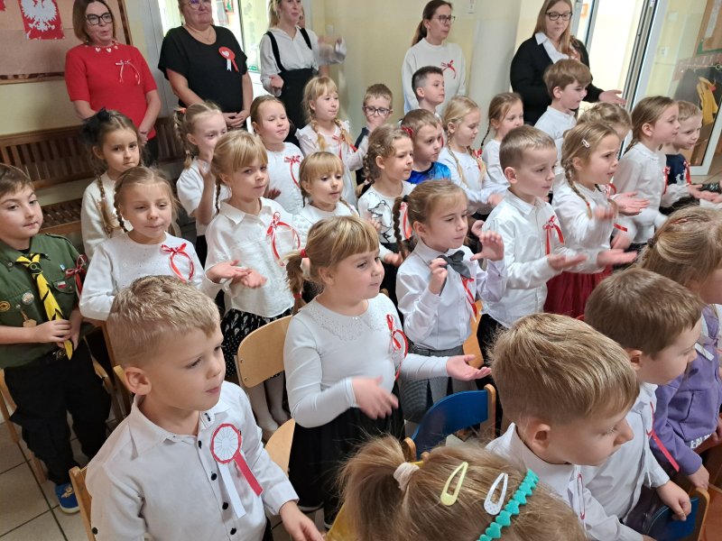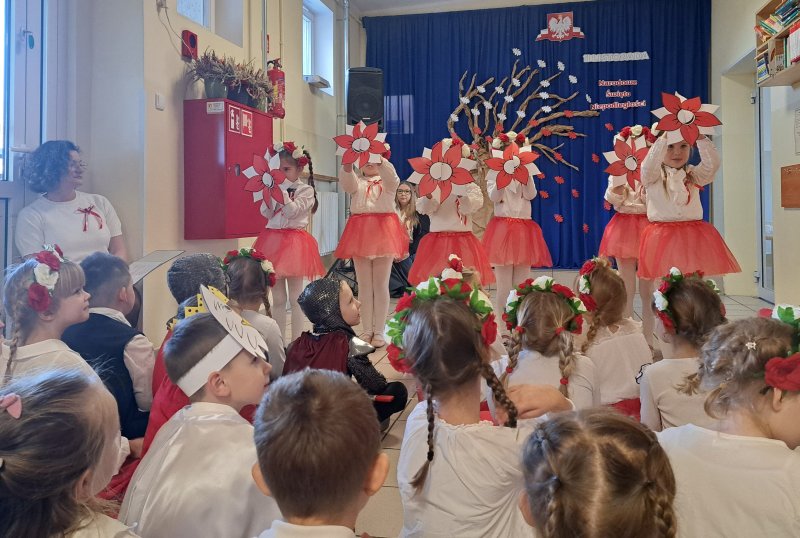 Dla utrwalenia wiadomości o naszej ojczyźnie dzieci oglądały zdjęcia i fotografie najważniejszych miejsc w Polsce, wykonały prace plastyczne, kotyliony i uczestniczyły w pięknej uroczystości, którą przygotowały najstarsze grupy: „Kubusie” i „Biedronki” wraz z wychowawczyniami. Wszyscy z zainteresowaniem i w dużym skupieniu oglądali przedstawienie o symbolach narodowych Polski. Krótka inscenizacja „Legendy o powstaniu państwa polskiego”, montaż słowno-muzyczny, odśpiewanie hymnu państwowego oraz rozmowa z zaproszonymi Gośćmi Harcerzami i Zuchami –  którymi była pięcioosobowa Rodzina naszego przedszkolaka Grzesia Muszyńskiego, to pielęgnowanie polskiej kultury i tradycji oraz rozwijanie poczucia przynależności narodowej, a także lekcja historii i patriotyzmu. Uczestnicząc corocznie w obchodach Święta Niepodległości dajemy wyraz pamięci o tych wszystkich, dzięki którym żyjemy w wolnej Polsce.