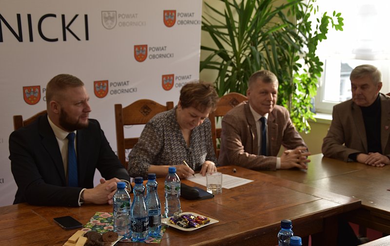 Oprócz sygnatariuszy umowy – Starosty Zofii Koteckiej, Burmistrza Obornik Tomasz Szramy, Wicestarosty Waldemara Cyranka i Skarbnika Powiatu Joanny Koniecznej obecni przy podpisaniu umowy byli także Przewodnicząca Rady Powiatu Aleksandra Kulupa, Przewodniczący Rady Miejskiej w Obornikach Paweł Drewicz oraz Radni Rady Miejskiej: Lucyna Orzeł, Błażej Pacholski i Jakub Przybysz.