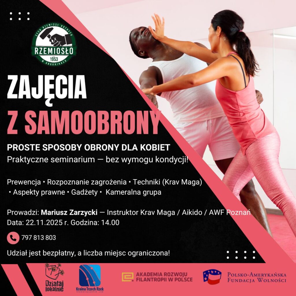Już 22 listopada w budynku Cechu Rzemiosł Różnych w Obornikach (przy ul. Ogrodowej 5 ) odbędą się bezpłatne zajęcia z samoobrony, podczas których uczestnicy nauczą się, jak unikać zagrożeń, reagować na agresję, stosować proste techniki Krav Maga, korzystać z gadżetów do samoobrony, rozumieć swoje prawa w sytuacji obrony koniecznej.