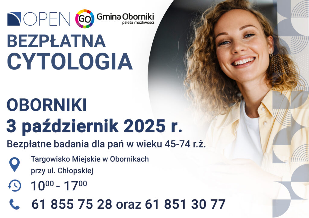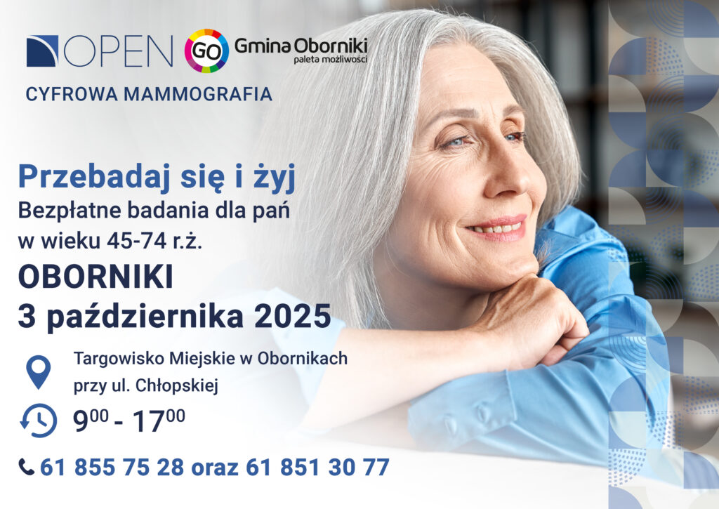 Gmina Oborniki zaprasza panie w wieku od 45 do 74 lat na bezpłatne badania profilaktyczne, które odbędą się 3 października na Targowisku Miejskim przy ul. Chłopskiej w Obornikach.