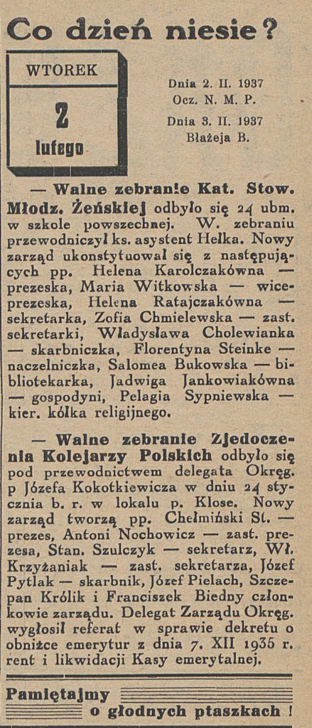 - 2 lutego 1937 r. odbyło się walne zebranie sekcji sportowej KPW (Kolejowe Przysposobienie Wojskowe) ognisko Oborniki. Prezesem wybrano Władysława Kandulskiego