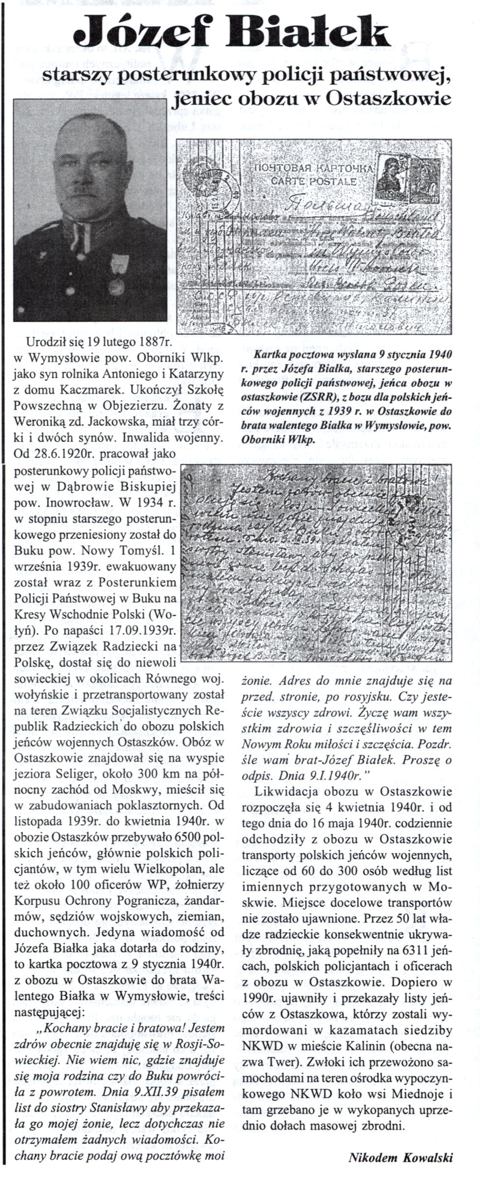 - 19 lutego 1887 r. w Wymysłowie urodził się Józef Białek starszy posterunkowy policji państwowej, jeniec obozu w Ostaszkowie