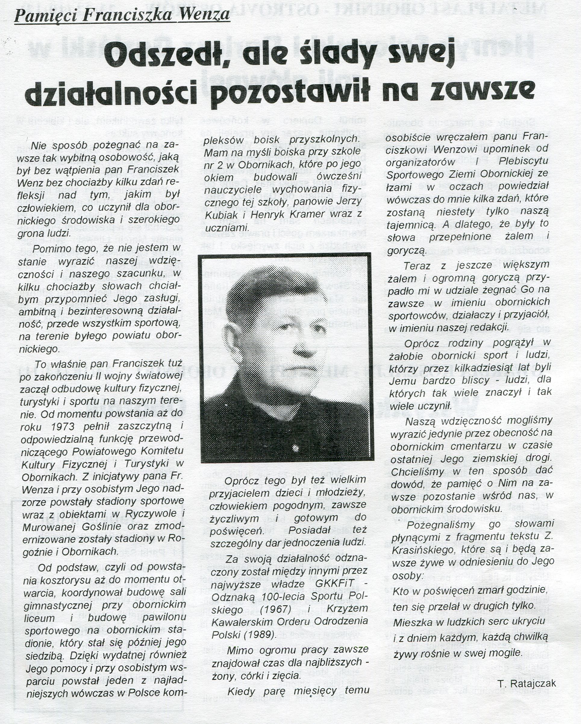 - 28 listopada 1995 r. zmarł Franciszek Wenz, projektant kompleksu boisk wybudowanych w latach 70 – tych przy Szkole Podstawowej numer 2 w Obornikach.