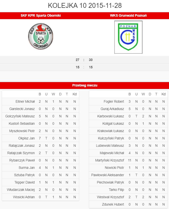 - 28 listopada 2015 r. piłkarki ręczne SKF KPR Sparta Oborniki w meczu o mistrzostwo II ligi pokonały AZS AWF Poznań 32:24