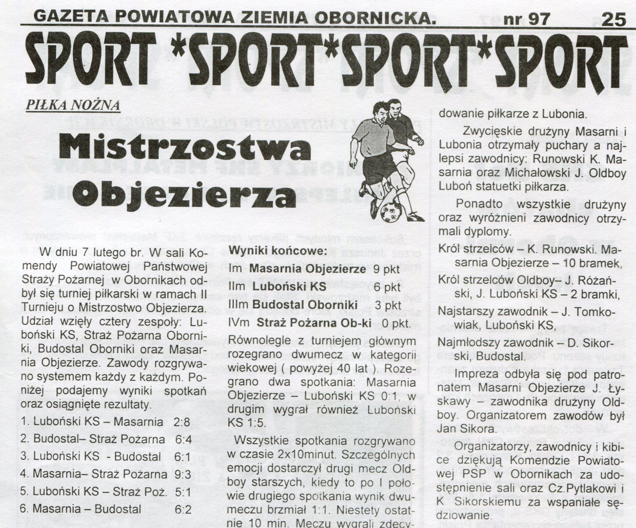 - 7 lutego 1999 r. w sali Komendy Powiatowej Państwowej Straży Pożarnej w Obornikach odbył się Ii Turniej o Mistrzostwo Objezierza