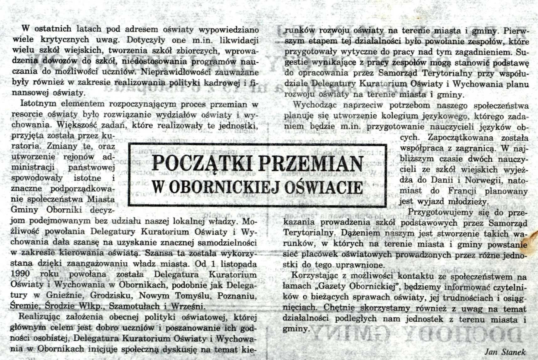 Gazeta Obornicka nr 1 ze stycznia 1991 r.