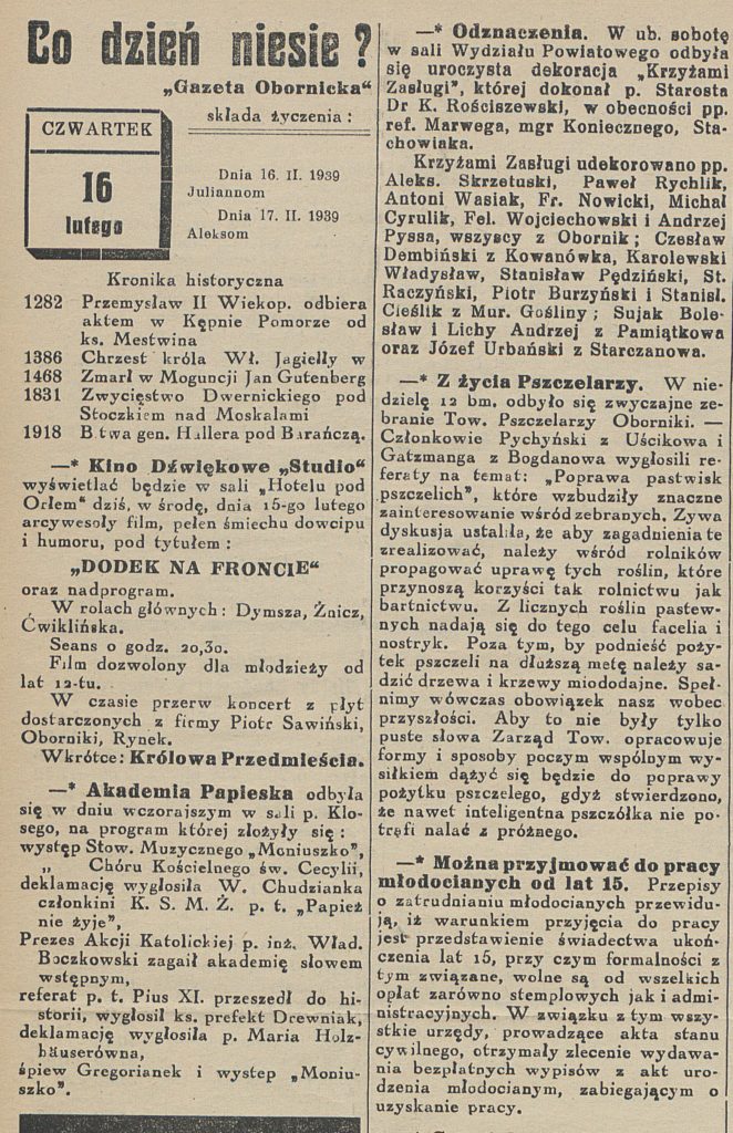 - 16 lutego 1945 r. Bolesław Pleśniarski jako przedstawiciel rządu RP przejął od Mieczysława Łukanowskiego stanowisko starosty obornickiego.