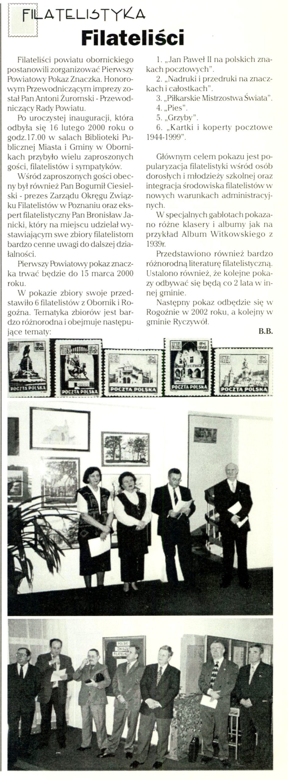 - 16 lutego 2000 odbyła się inauguracja Powiatowego Pokazu Znaczka