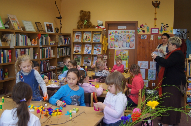 - 19 marca 2013 r. mimo brzydkiej pogody przywędrowały do naszej biblioteki dzieci z Przedszkola nr 5 Kolorowe Nutki. Tematem spotkania był praca bibliotekarza. Dzieci dowiedziały się na czym ona polega. Były też zagadki, wiersze i tradycyjny spacer po bibliotece.