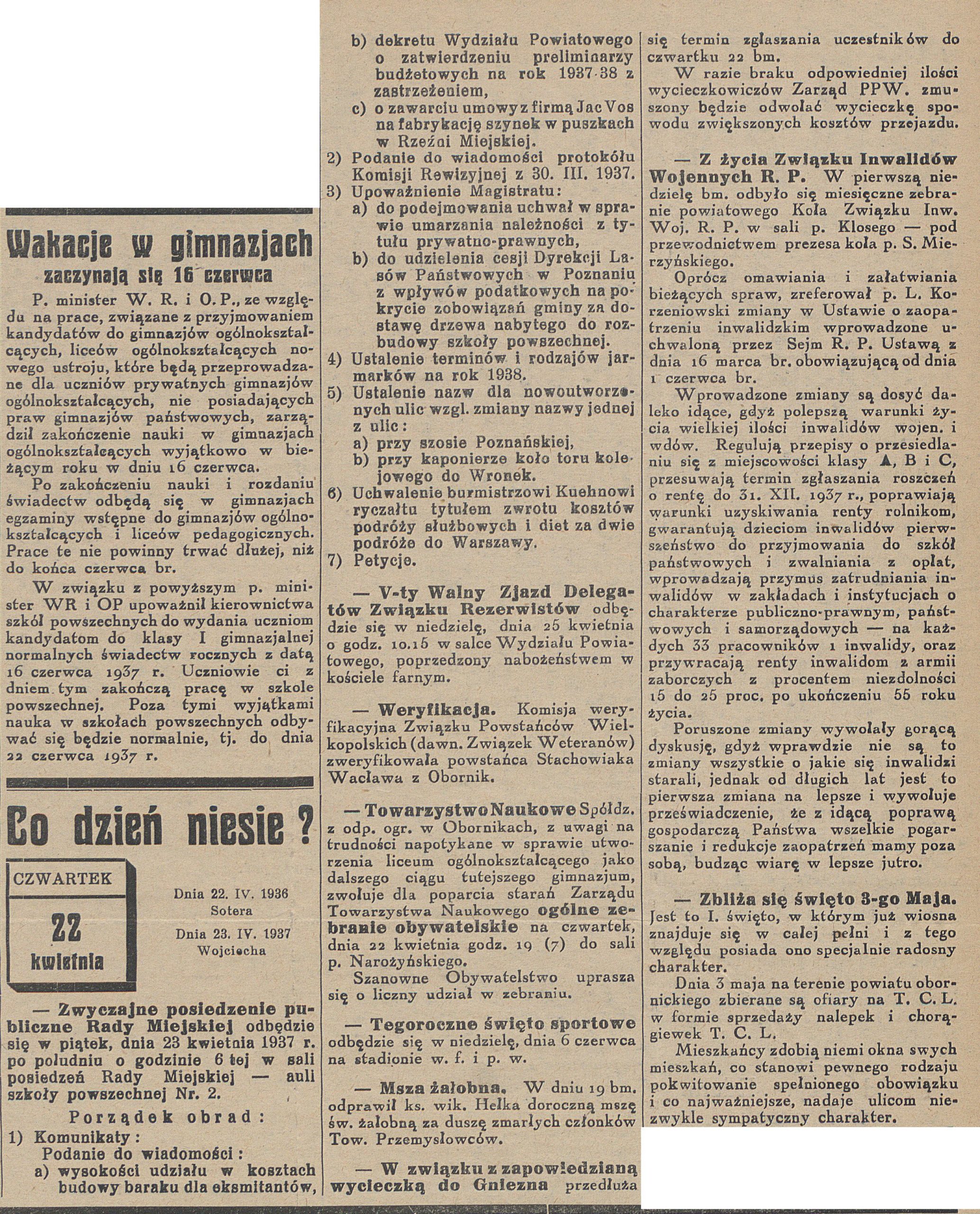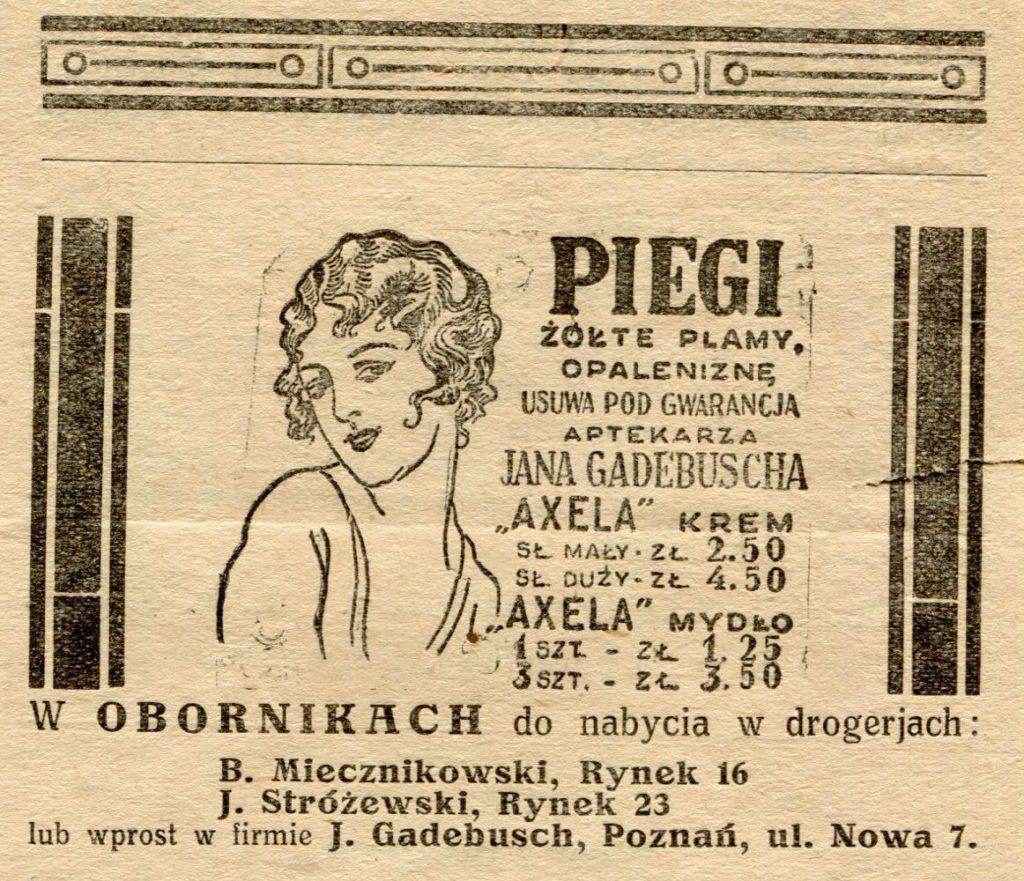 - 21 kwietnia 1938 r. zgodnie z zarządzeniem ówczesnego burmistrza Obornik Khuna, we wszystkich budynkach miasta Oborniki trzeba było wyłożyć trutkę na szczury. Poprawność wyłożenia trutki sprawdzać mieli specjalni kontrolerzy. Niedostosowanie się do zarządzenia skutkować mogło karą grzywny do 60 zł lub pozbawienia wolności do dni 7. Trutka była do nabycia w drogerii Weichmana
