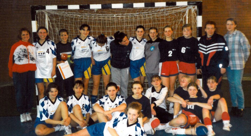 Zdjęcie główne to drużyny dziewczęce piłki ręcznej Szkół Podstawowych nr 3 i 4 w roku 1996 🙂
