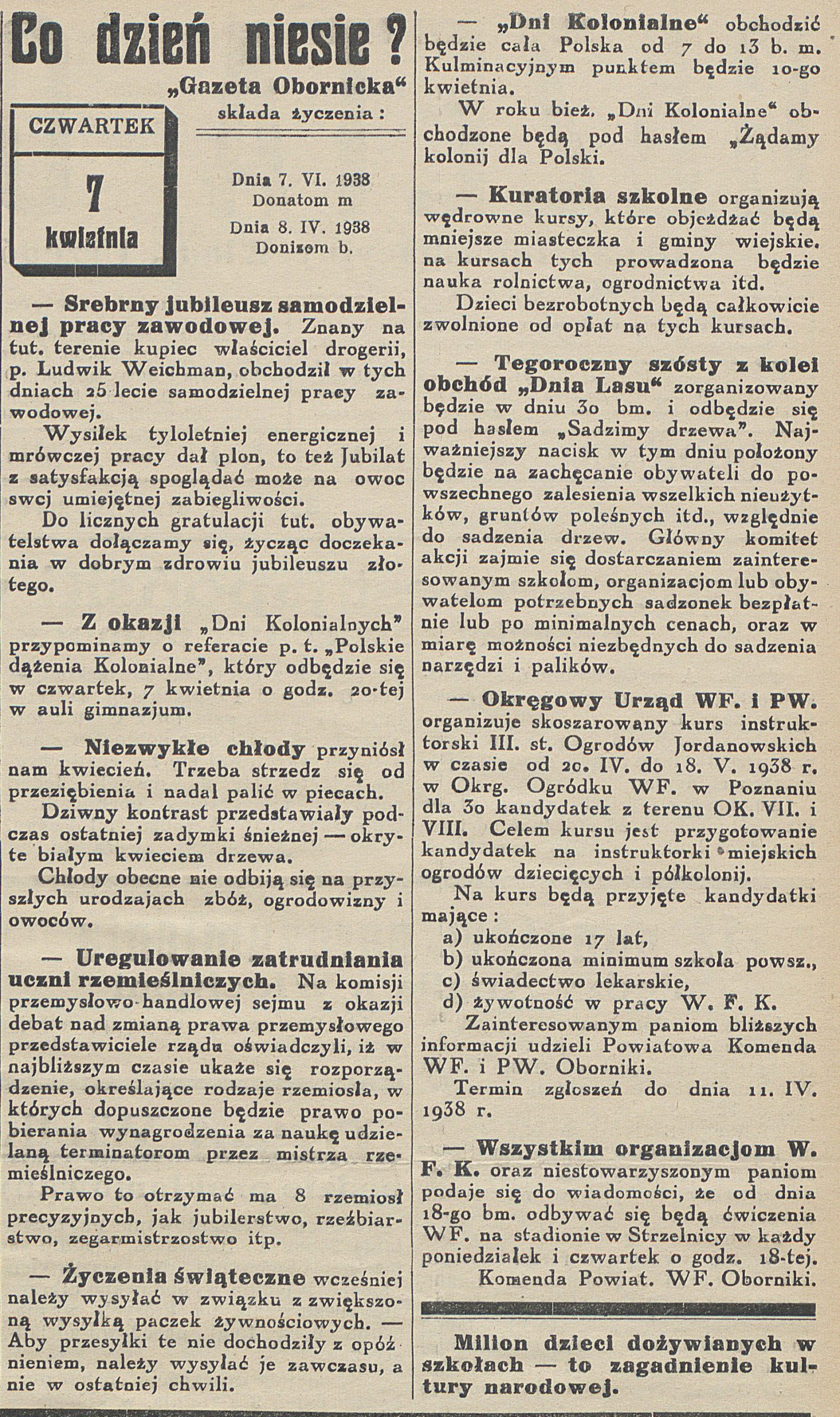- 7 kwietnia 1994 r. w Obornikach rozpoczął się pobór do wojska. Komisja poborowa swoją siedzibę miała w Obornickim Domu Kultury