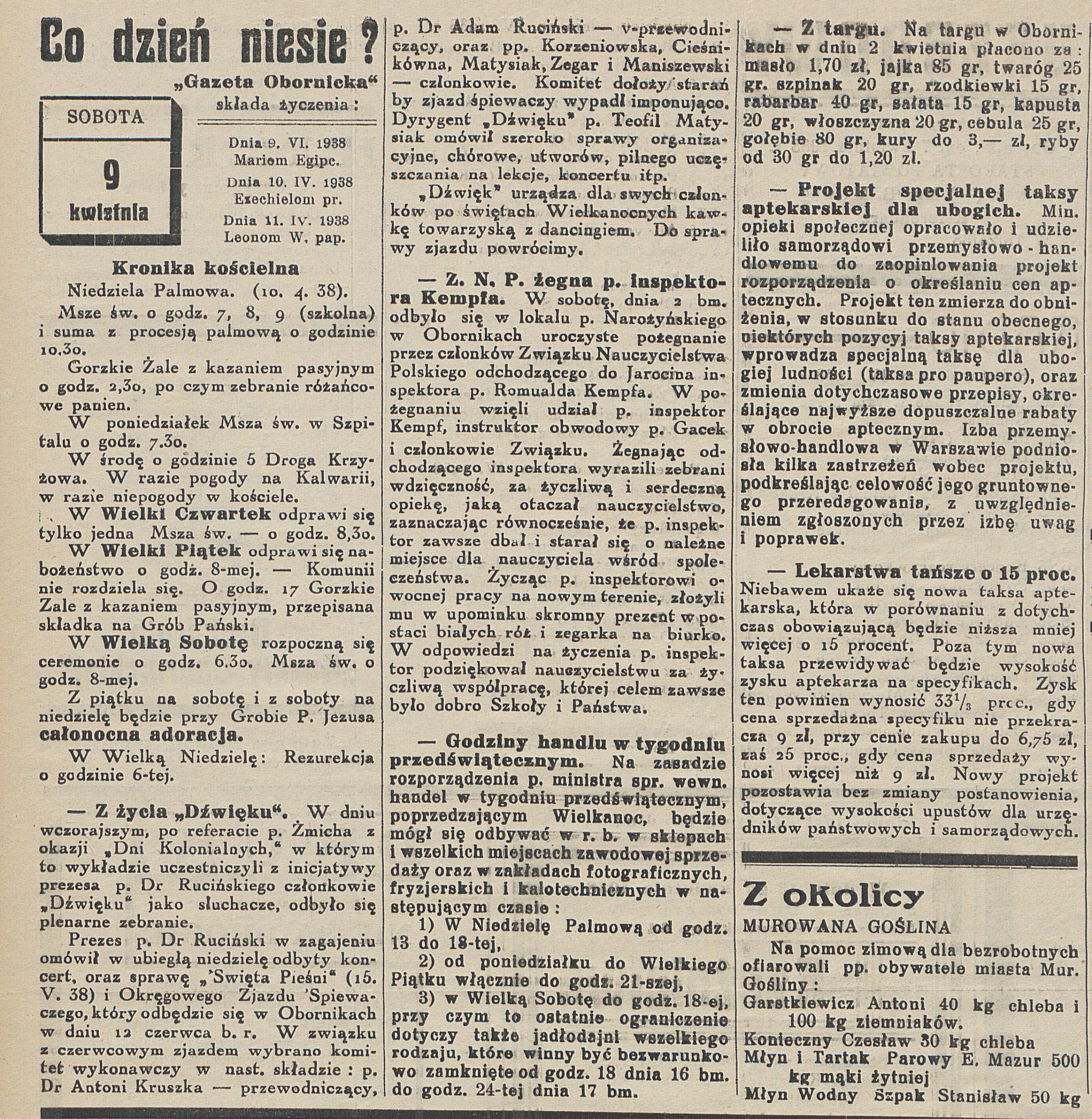 - 9 kwietnia 1937 r. w salce wydziału powiatowego o godz. 16.30 odbyło się miesięczne zebranie Koła Kobiecego Ligi Obrony Przeciw Powietrznej
